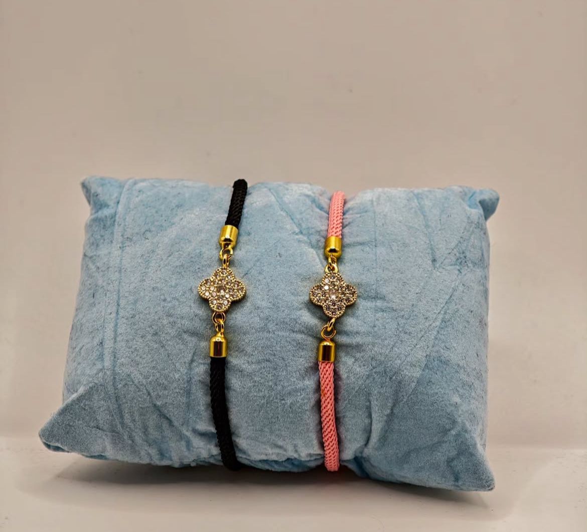 كل سوار مزين بقطعة مركزية أنيقة على شكل وردة رباعية، مرصعة بأحجار براقة تضيف لمسة من الفخامة والتألق، ومصنوعة من مواد مطلية بتقنية XP عالية الجودة، مقاومة للماء والعطور، فلا يتغير لونها مع مرور الوقت أو مع الاستعمال اليومي.🧵 مميزات الطقم: طلاء فخم مقاوم للماء والعرق والعطور.